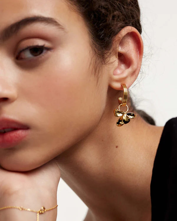 Tre cerchi contigui ornati da un fiore pendente sono alla base del design unico degli orecchini Ivy. Accuratamente lucidati e placcato in oro 18k, questa collezione trae ispirazione dalla resilienza e dalla delicatezza del mondo floreale. Blossom è un elogio della rinascita e rappresenta la promessa di un nuovo inizio.